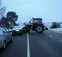 19 января 2018 в 09:00 на 44 км а/д "Шклов-Белыничи через д.Пригани", водитель трактора "МТЗ", 1978 года рождения, житель г.Белыничи, при повороте не предоставил преимущество автомобилю "Ауди" под управлением жителя г.Белыничи, 1990 года рождения. В результате ДТП транспортным средствам причинены механические повреждения. По факту ДТП проводится проверка.