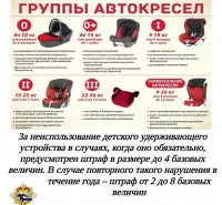 За неиспользование детского удерживающего устройства в случаях, когда оно обязательно, предусмотрен штраф в размере до 4 базовых величин. В случае повторного такого нарушения в течение года – штраф от 2 до 8 базовых величин.