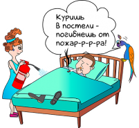 недопустимо курение в кровати. Особенно при нахождении человека в состоянии алкогольного опьянения или под воздействием каких-либо медицинских препаратов, которые вызывают сонливость;