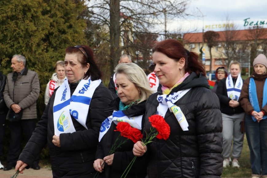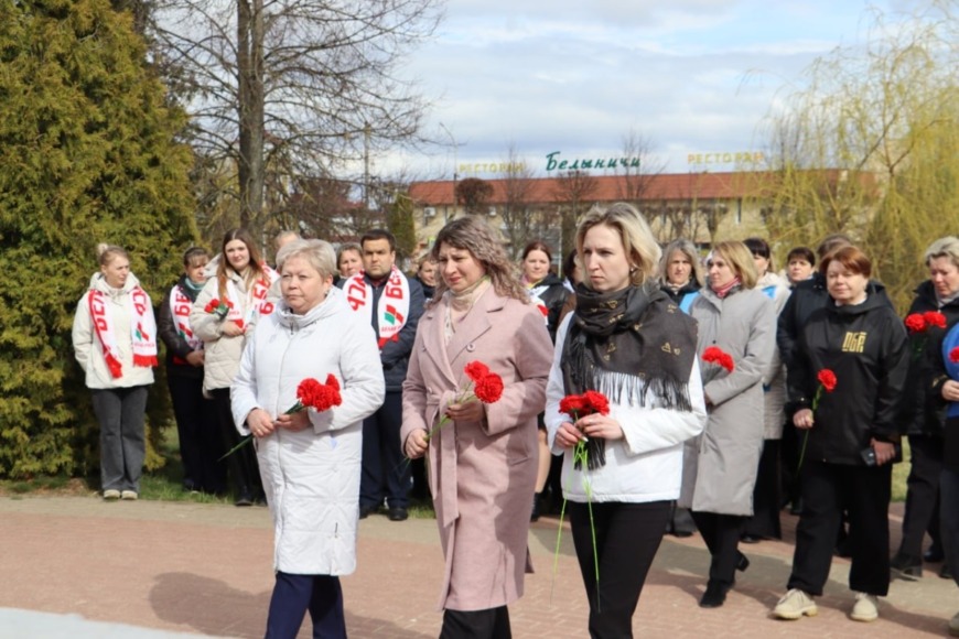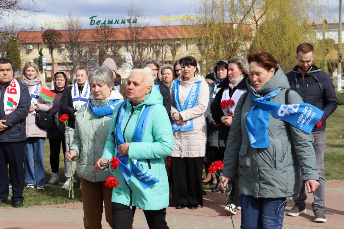 К подножию памятника пришли те, для кого память о войне – не просто строчки в учебнике. В мероприятии приняли участие руководство Белыничского района, представители общественных организаций и ветеранских объединений, политических партий, активная молодёжь и делегации трудовых коллективов предприятий и учреждений района.