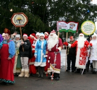 Свята адкрыла шэсце дружын Дзедаў Марозаў, якія з песнямі, скокамі прайшліся ад гарадской ёлкі да РЦК. Узначаліла гэты незвычайна маляўнічы парад калядная дружына райспажыўтаварыства як пераможца мінулагодняга аналагічнага творчага саперніцтва.