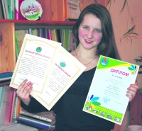 З а праект “Праведница мира” ў намінацыі “Знакамітыя землякі” Улада Адамовіч (на здымку) узнагароджана Дыпломам І ступені. Таксама дзяўчыне перадалі падзячныя лісты яе бацькам і настаўнікам.
