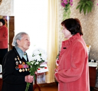 Напярэдадні Міжнароднага жаночага дня і з нагоды 70-годдзя перамогі савецкага народа ў Вялікай Айчыннай вайне ў рамках акцыі “Мы вас віншуем, баявыя сяброўкі” жанчын-ветэранаў, удзельніц вайны Кацярыну Нізаўцову (на здымку), Веру Варламаву, Клаўдзію Корзун, Маю Чорную, Марыю Філіпенка, Кацярыну Чыжык, Марыю Ванькураву і Марыю Цітову наведалі намеснік старшыні райвыканкама Надзея Серыкава, ваенны камісар раёна Аляксандр Кавалёў, намеснік начальніка аддзела ідэалагічнай работы, культуры і па справах моладзі райвыканкама Лідзія Цапікава, начальнік упраўлення па працы, занятасці і сацыяльнай абароне райвыканкама Вольга Таран і разам са шчырымі віншавальнымі словамі і падзякай за Перамогу над фашыстамі ўручылі ім кветкі і святочныя паштоўкі.