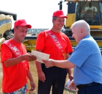 С трудовой победой вчера, 4 августа, лидеров жатвы поздравили председатель райисполкома Николай Кодатенко, председатель райкома профсоюза работников АПК Станислав Бурко и председатель СПК «Колхоз «Родина» Александр Лапотентов. Комбайнерам были вручены дипломы и денежные премии. В тот же день председатель областного объединения профсоюзов Игорь Щербаков вручил экипажу Николая Даречкина и Валентина Якушева благодарности и денежные премии.