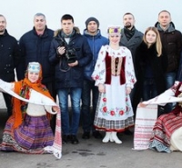 Прадстаўнікі раённай улады і артысты РЦК на мяжы Магілёўскай і Мінскай абласцей у нядзелю сустракалі журналістаў расійскіх і саюзных сродкаў масавай інфармацыі ў рамках прэс-тура, які праходзіць у гэтыя дні на Магілёўшчыне.