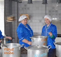 — Меню мяняецца кожны дзень, — гаворыць загадчыца сталовай таварыства Тамара АНДРУЦКАЯ. — Выкарыстоўваем толькі беларускія прадукты харчавання, мясцовую гародніну і мяса. Комплексныя абеды з трох страў і вячэры гатуем з душой, строга прытрымліваемся нормаў каларыйнасці. Уся ежа збалансаваная, багатая на неабходныя для арганізма харчовыя рэчывы.