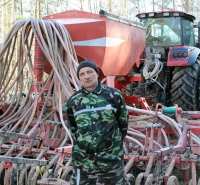 Андрэй НІКІЦЁНАК на трактары МТЗ-3522 з сеялкай АКПМ-6 завяршаў сяўбу зернебабовых культур каля вёскі Хвойна. У таварыстве ён лічыцца адным з самых вопытных механізатараў.