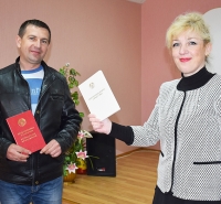 Галоўны спецыяліст аддзела ЗАГС Таццяна АРЛОЎСКАЯ цёпла павіншавала шчаслівага бацьку з такой важнай падзеяй і ва ўрачыстай абстаноўцы ўручыла яму пасведчанне асаблівага ўзору аб нараджэнні дзіцяці і Кодэкс аб шлюбе і сям’і.