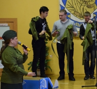 Не абышлося і без цікавых конкурсаў, якія падрыхтавалі для будучых салдат артысты РЦК. Апранацца за 45 секунд і есці навыперадкі яны пачалі вучыцца прама падчас мерапрыемства. Праверылі і інтэлектуальныя здольнасці навабранцаў: задавалі ім пытанні пра віды ўзбраення і іерархію ваенных званняў.