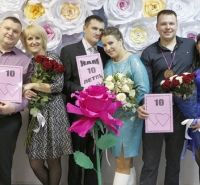 У аддзеле ЗАГСу прайшло ўрачыстае мерапрыемства “Ружовыя вяселлі”, на якім былі замацаваны шлюбы, заключаныя дзесяць гадоў назад.