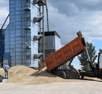 Пасля ўзважання МАЗ выгружае зерне на пляцоўку, адкуль яно паступае ў сушылку. Устаноўку гаспадарка набыла пяць гадоў таму. З тых часоў працэс значна паскорыўся. Зараз ён поўнасцю аўтаматызаваны.