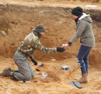 На раскопках Цвінтара задзейнічаны археолагі аддзела археалогіі першабытнага грамадства Інстытута гісторыі НАН Беларусі Алесь Вашанаў, Марыя ТКАЧОВА, Ганна ЯСКОВІЧ, навуковы супрацоўнік аддзела антрапалогіі Інстытута Уладзіслаў КРУМПЛЕЎСКІ.