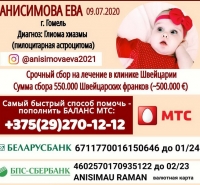 Назначение платежа: Для сбора денежных средств на лечение Анисимовой Евы Романовны.
