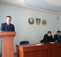 Встречу с коллективом ДРСУ-170 по вопросам изменения статей в Конституцию Республики Беларусь провели помощник прокурора Могилевской области Ренат Мозоль и заместитель прокурора Белыничского района Денис Котковец