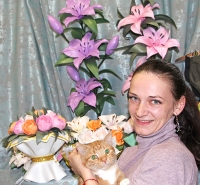 В небольшой белыничской «двушке» у Ирины ТЕРЕШКОВОЙ все подоконники и полки шкафов – будто стеллажи расцвеченной яркими красками оранжереи. Здесь и орхидеи, и тюльпаны, и лилии, и розы, и крокусы. Правда, запахов эта «клумба» не издаёт, и поливать её не нужно. Зато можно подключить электричество, и цветник вспыхнет жёлтым ласковым теплом. Да, цветы ненастоящие, но и назвать их искусственными в привычном восприятии язык не поворачивается. Как игрушечные – они будто выпорхнули с экрана телевизора из ярких диснеевских мультиков. Ещё их можно сравнить разве что с кремовыми аппетитными цветочками с тортиков и пирожных. Это необычные, ручной работы светильники.