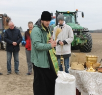 Первое зерно посеяли в землю председатель хозяйства Олег Лапотентов с сыновьями и племянниками, а также главный агроном Александр Лейбутин.