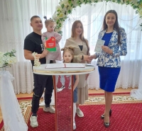 Так, в рамках республиканской акции «Моя семья – моя страна», которая проходит в преддверии празднования Дня семьи, а также накануне ещё одного важного события для белорусов – Дня Государственного герба, Государственного флага и Государственного гимна Республики Беларусь, молодые пары Евгения и Кристины Тишкевичей, а также Дмитрия и Дарьи Талановых во время торжественной церемонии бракосочетания поздравила начальник райотдела ЗАГСа Наталья Лазовская.