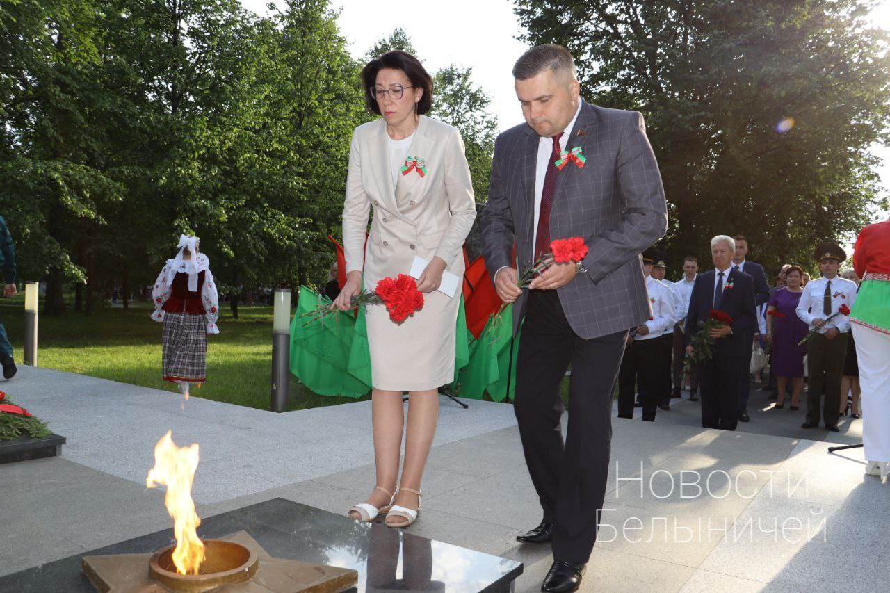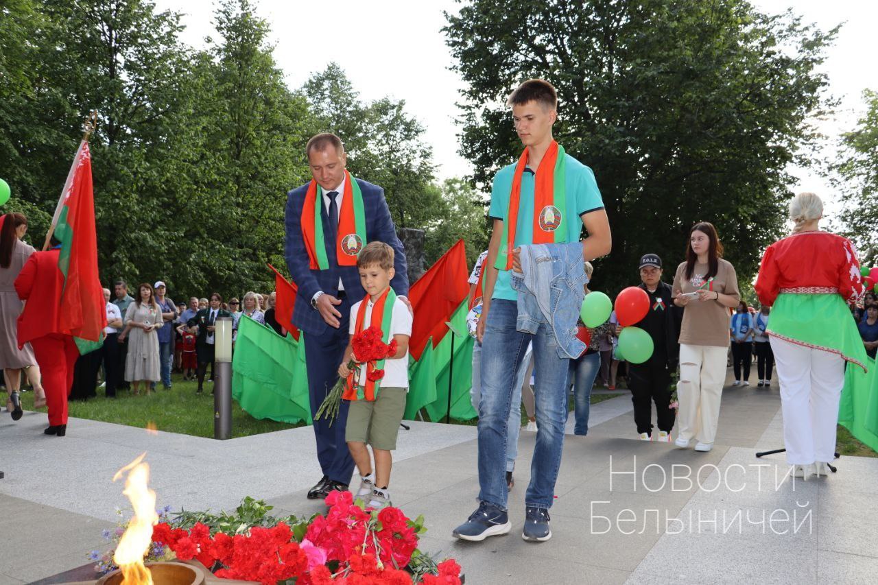 Вечернюю программу мероприятий в рамках празднования Дня Независимости в Белыничах открыл митинг на Аллее Героев в Липовой роще с участием руководства района, лидеров и активистов общественных объединений, ветеранов труда и молодёжи.