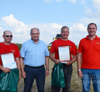 Экипажи комбайнов, намолотивших 3 тысячи тонн зерна, поздравили непосредственно в поле председатель обкома профсоюза работников АПК Владимир Петрович, а также представители профсоюзных организаций Белыничского района, обкома и райкома ОО «БРСМ».
