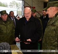 По итогам посещения артиллерийской базы Александр Лукашенко похвалил военных за сохранность вооружения и военной техники. "Хороший у них объект. Толковый. Это уже не будущее, а настоящее. Это путь, по которому мы шли, совершенствуя, модернизируя и сохраняя наше оружие. Сегодня убедился, что военные у нас молодцы. Мы очень много внимания уделяем тому, чтобы наши военные были накормлены, одеты, отдыхали и обучались в хороших казармах. Скажу как военный человек - это ничто, когда нет оружия и боеприпасов", - сказал глава государства.