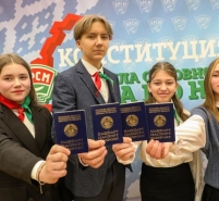 Свой первый паспорт 11 марта в Конституционном суде г.Минска накануне Дня Конституции получила учащаяся Светиловичской школы Дарья Лыськова (на фото слева). Фото Елизаветы Кобецкой.