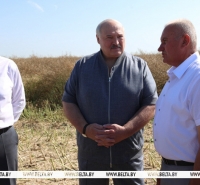 24 июля, Минск /Корр. БЕЛТА/. Президент Беларуси Александр Лукашенко инспектирует ход уборочной кампании. Глава государства приехал в сельхозпредприятие "Восход", передает корреспондент БЕЛТА.