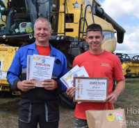 Подарки и дипломы от РК ОО «БРСМ» получили молодые помощники комбайнеров Михаил Фурсов и Виктор Васильев (в паре с Евгением Шолковским они недавно перешагнули намолот в 3 тысячи тонн).
