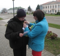 Лидеры молодежного объединения в учебных учреждениях района, общественных местах вручили жителям райцентра буклеты “Молодежь выбирает здоровье” и символ отказа от курения - зеленую ленточку.