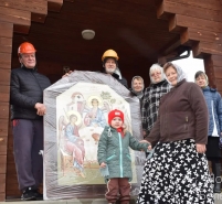 – В ноябре прошлого года у нас случилась беда: большой ветер сорвал прежнюю икону с изображением Пресвятой Троицы, которая висела на входе в храм 11 лет, – рассказывает церковный казначей Вера Кужалькова. – Икона при падении разбилась и восстановлению не подлежала. Наши прихожане, в том числе и уроженцы Головчина, проживающие в других городах, поучаствовали финансово, чтобы у нас появилась новая икона, написанная уже на другом материале и адаптированная к условиям улицы.