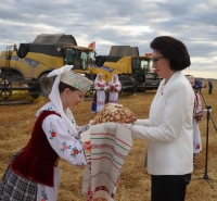Каравай нового хлеба от губернатора в честь миллионного намолота зерна
