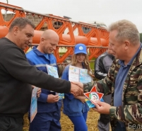 Поздравить виновников события на поле около д.Почепок приехали первый заместитель председателя райисполкома Александр Смычек, председатель райкома профсоюза работников АПК Алеся Новиченок и руководитель хозяйства Николай Скрипунов.